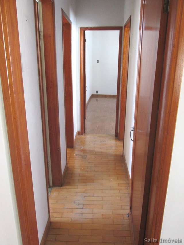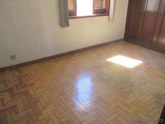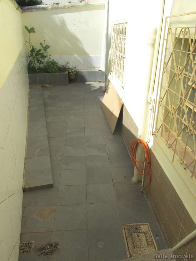 Casa de laje com telhado colonial, piso de tacos e marmorite, sala, copa, sacada, 3 quartos, sendo 1 suíte, banheiro social, cozinha, área de serviço, porão com quarto e banheiro e garagem