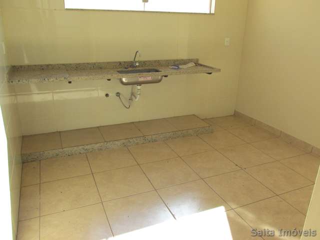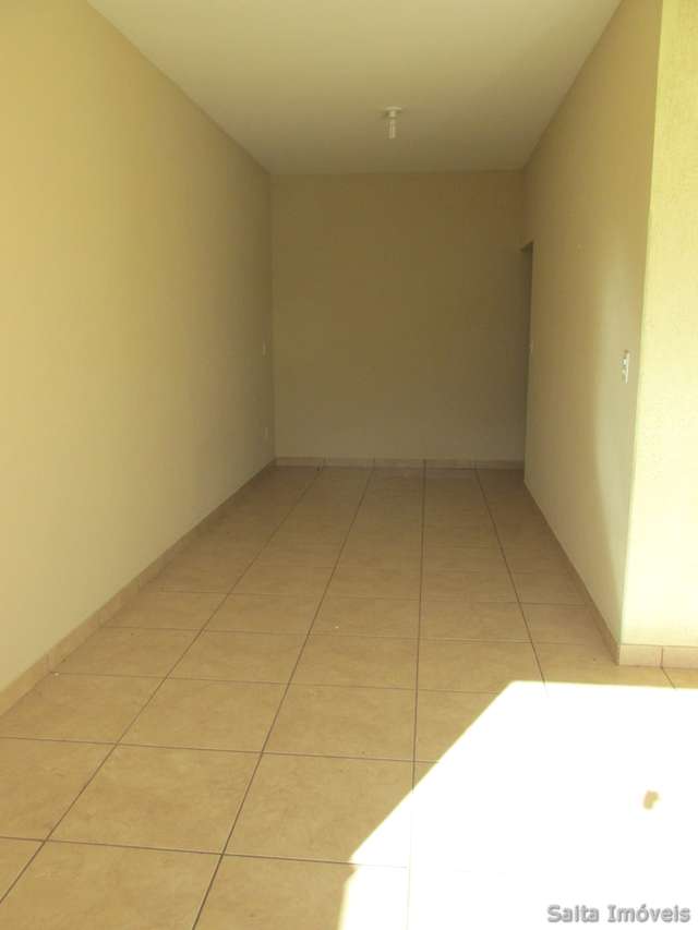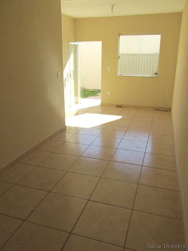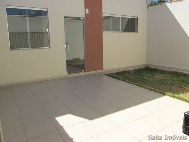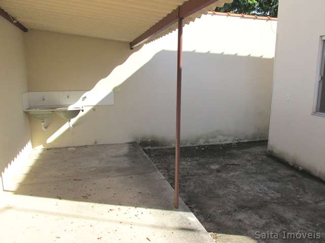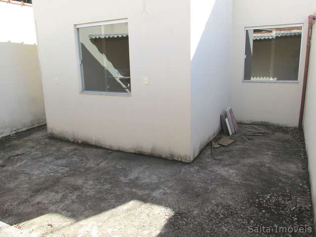 Casa de laje com telhado de amianto, piso de cerâmica, sala/copa conjugados, 3 quartos, banheiro, cozinha, área de serviço, quintal pequeno e garagem