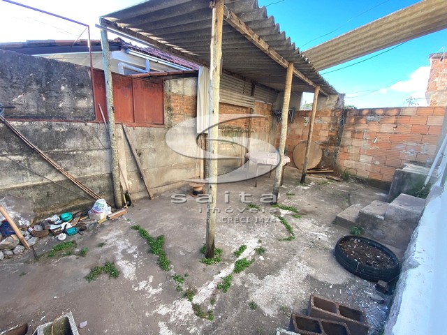 Descrição Casa de laje com telhado de amianto, piso de ladrilhos, sala, 2 quartos, cozinha, banheiro e área de serviço