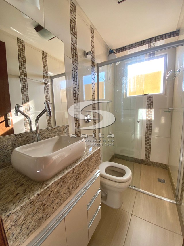 Apartamento com sala, 2 áreas externas, 3 quartos sendo 1 suíte, 1 banheiro social, cozinha com armário e área de serviço. Prédio sem elevador e 1 vaga de garagem.