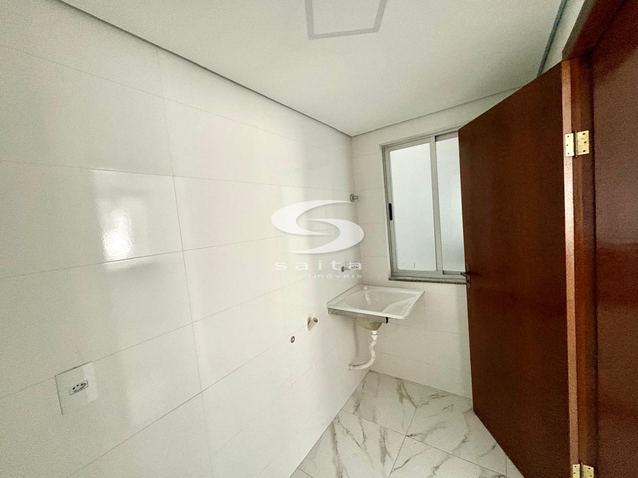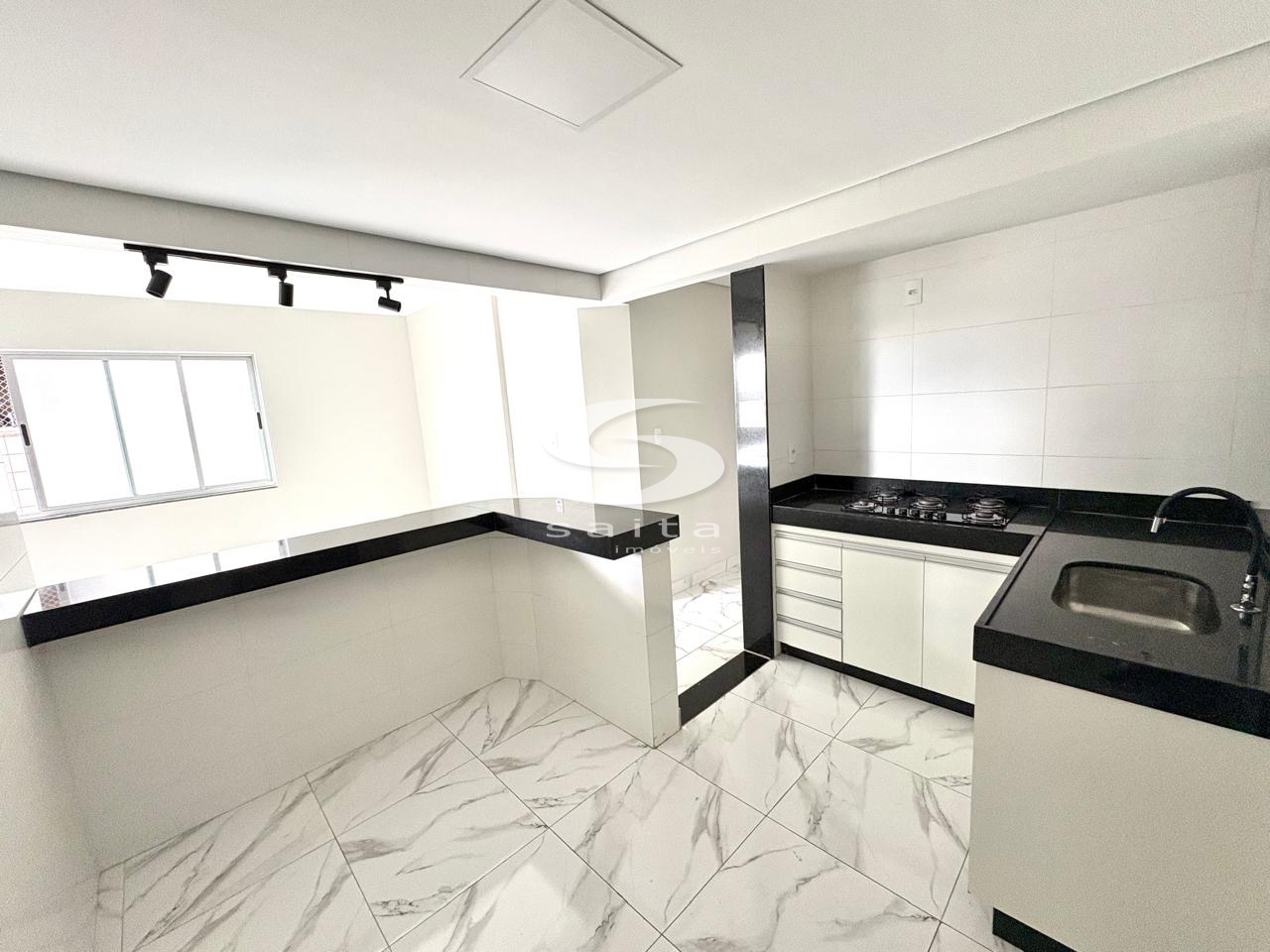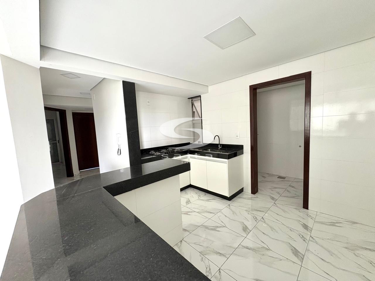 Apartamento com sala, 3 quartos sendo 1 suíte, 1 banheiro social, cozinha, área de serviço, prédio com elevador e 1 vaga de garagem.