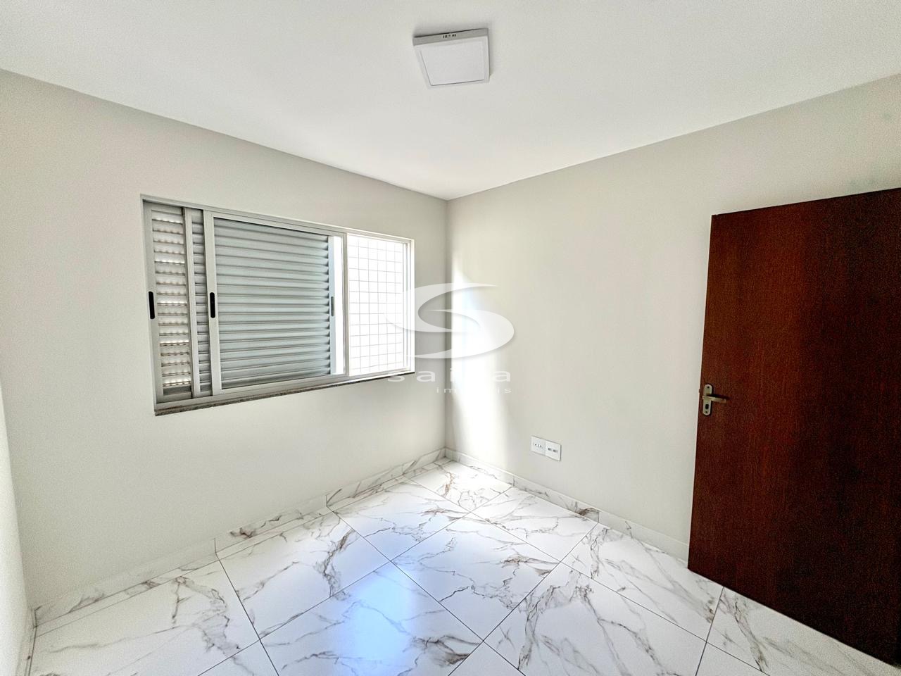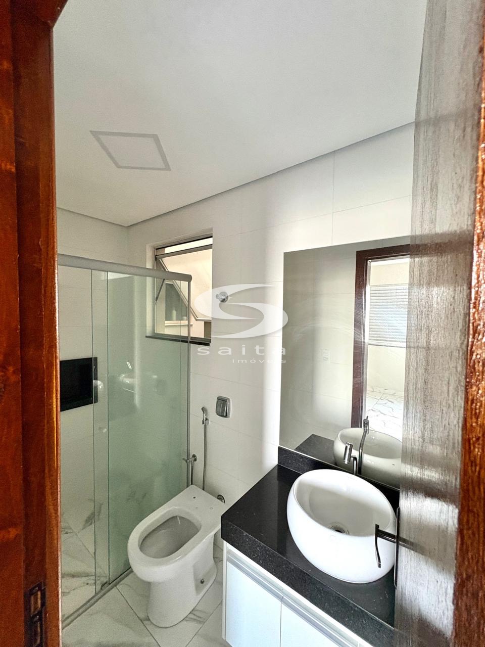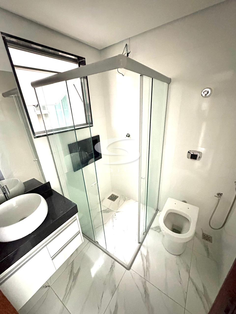 Apartamento com sala, 3 quartos sendo 1 suíte, 1 banheiro social, cozinha, área de serviço, prédio com elevador e 1 vaga de garagem.