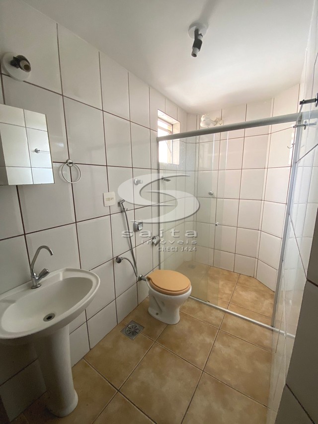 Apartamento com piso de cerâmica, cozinha tipo americana, sala, 2 quartos, 1 banheiro social, e área de serviço. 1 vaga de garagem e prédio sem elevador.