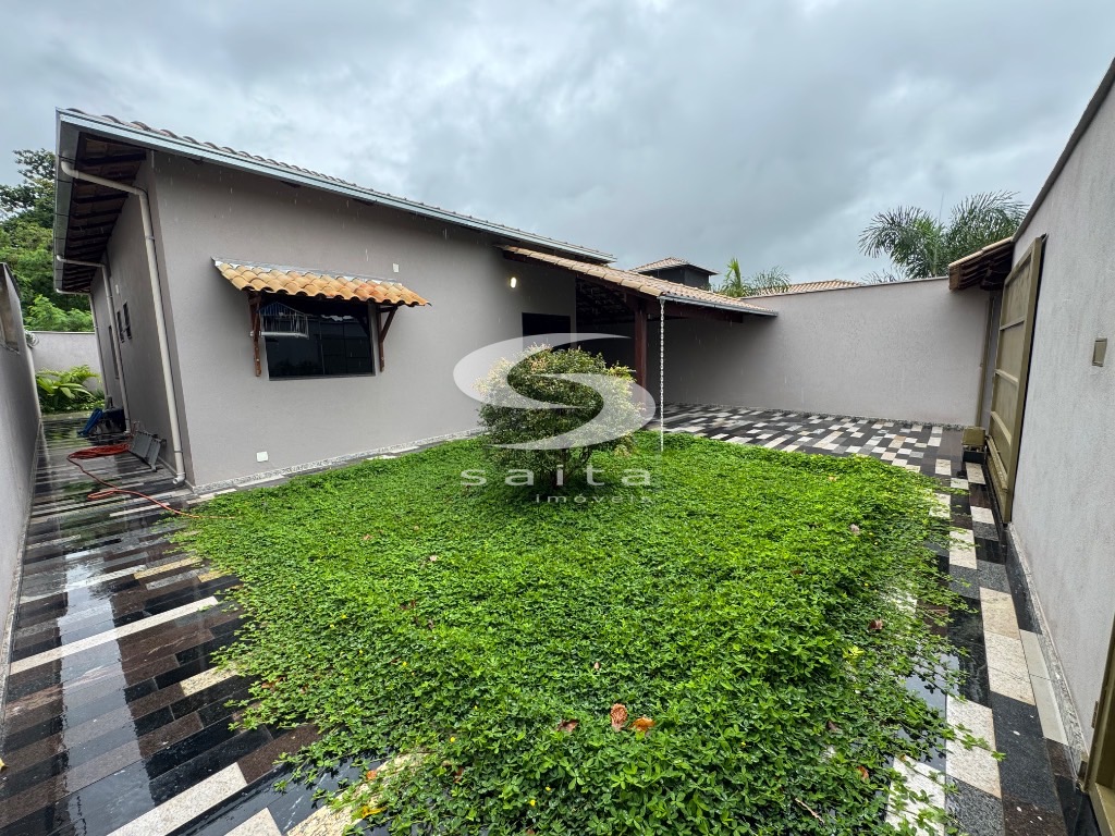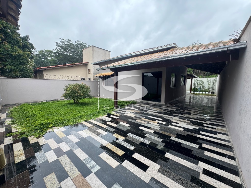 Casa de laje com telhado, sala, 3 quartos sendo 1 suíte, 1 banheiro social, cozinha, área externa com piscina e 1 vaga de garagem.