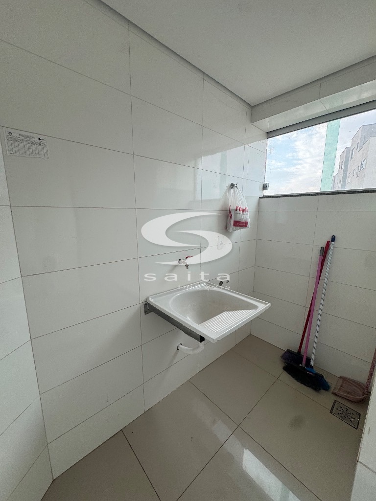 Apartamento com sala, 3 quartos sendo 1 suíte, 1 banheiro social, cozinha, área de serviço, 2 vagas de garagem e prédio com elevador.