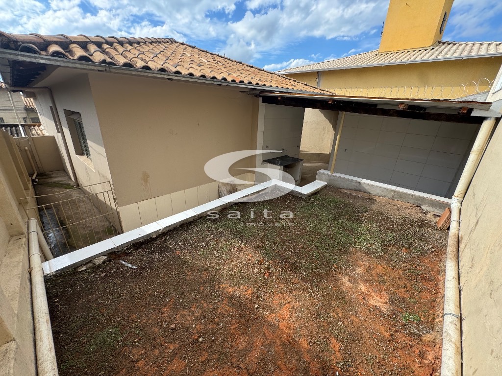 Casa de laje com telhado, sala, copa, 3 quartos, 1 banheiro, cozinha, área de serviço, 1 quarto de despejo, área externa e 1 vaga de garagem.