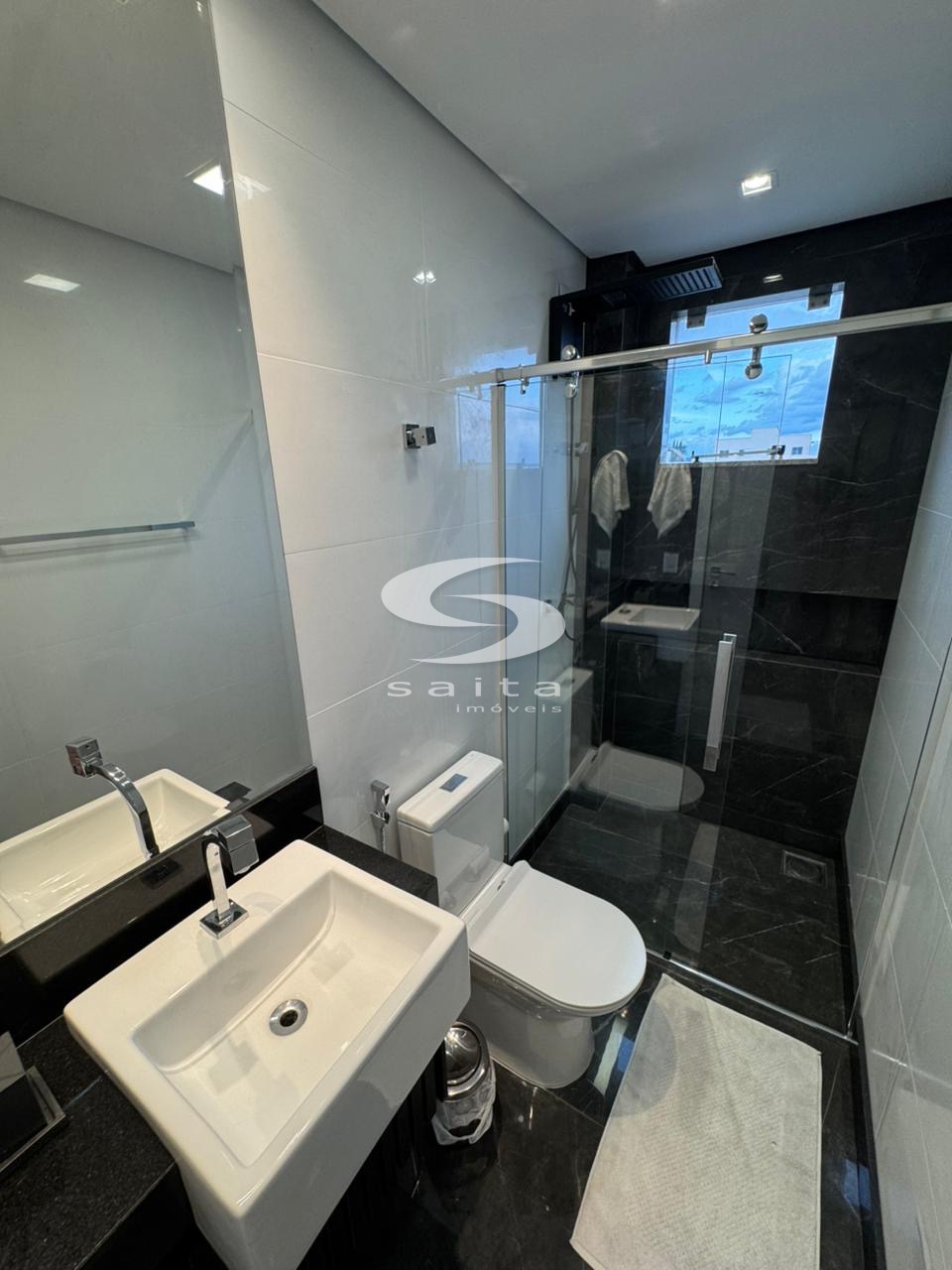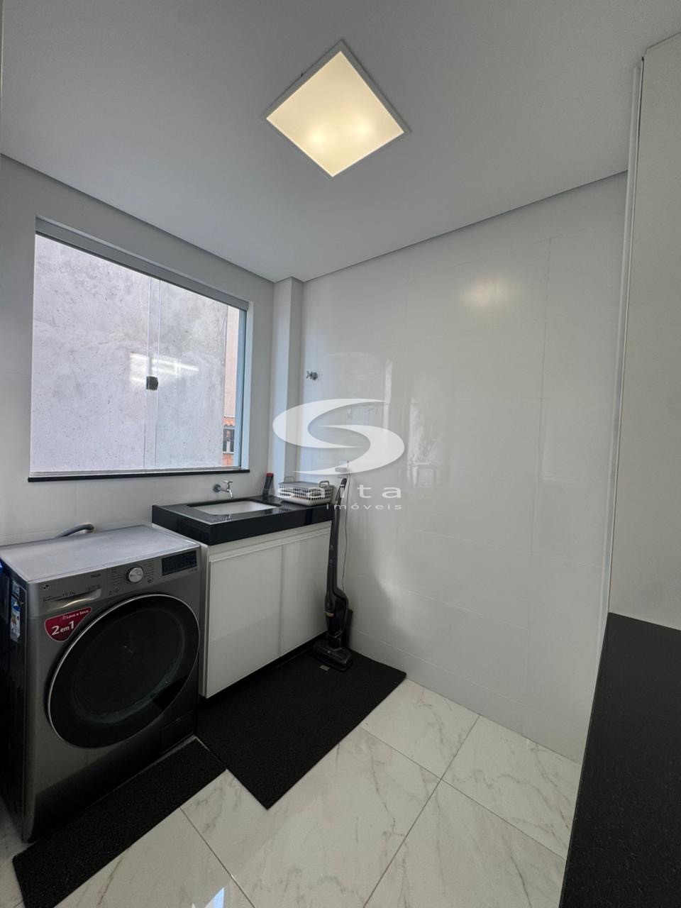 Apartamento com sala, 3 quartos sendo 1 suíte com closet, 1 banheiro social, cozinha, área de serviço, 2 vagas de garagem e prédio com elevador.
